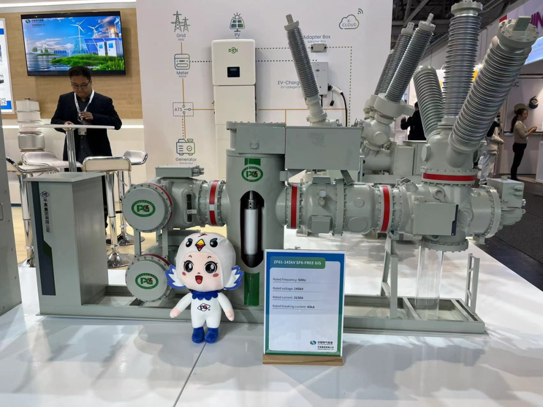 為積極參與全球新型電力系統(tǒng)建設,推動全球電網(wǎng)綠色發(fā)展,平高集團聚焦“綠色環(huán)保,智能制造”主題,重點展出了真空滅弧室、72.5千伏GIS(風機用)、145千伏環(huán)保GIS產(chǎn)品、145千伏SF6 HGIS產(chǎn)品、±550千伏直流GIS、光儲充一體化設備及配套商業(yè)場景模型,充分展現(xiàn)了平高集團科技創(chuàng)新、智能制造實力及支持全球新型電力系統(tǒng)建設和綠色發(fā)展的能力。